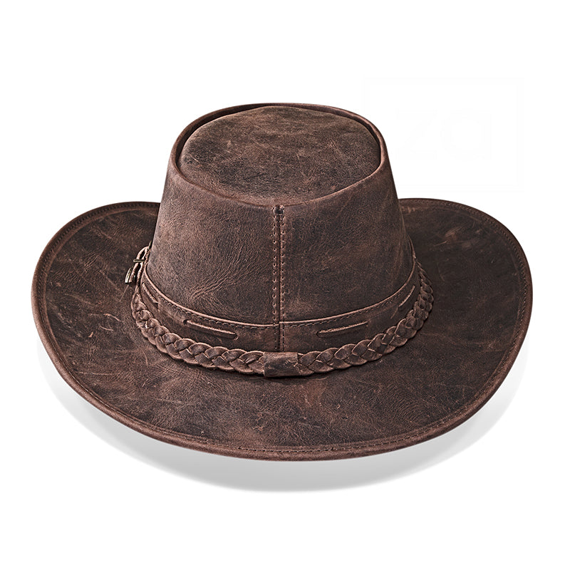Chapéu Country Australiano Marrom Rústico Outlander, projetado para indivíduos que não apenas seguem tendências, mas as definem. Cada detalhe deste chapéu foi cuidadosamente escolhido para oferecer uma mistura de tradição e inovação, destacando-se como um símbolo de sofisticação casual.