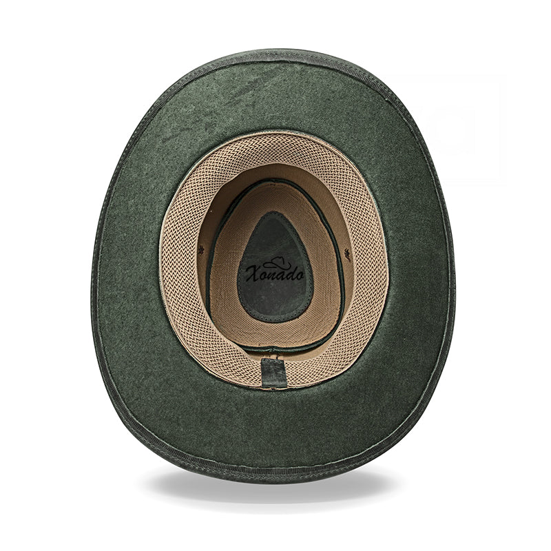 Chapéu Country Australiano Verde Rústico Outlander, projetado para indivíduos que não apenas seguem tendências, mas as definem. Cada detalhe deste chapéu foi cuidadosamente escolhido para oferecer uma mistura de tradição e inovação, destacando-se como um símbolo de sofisticação casual.